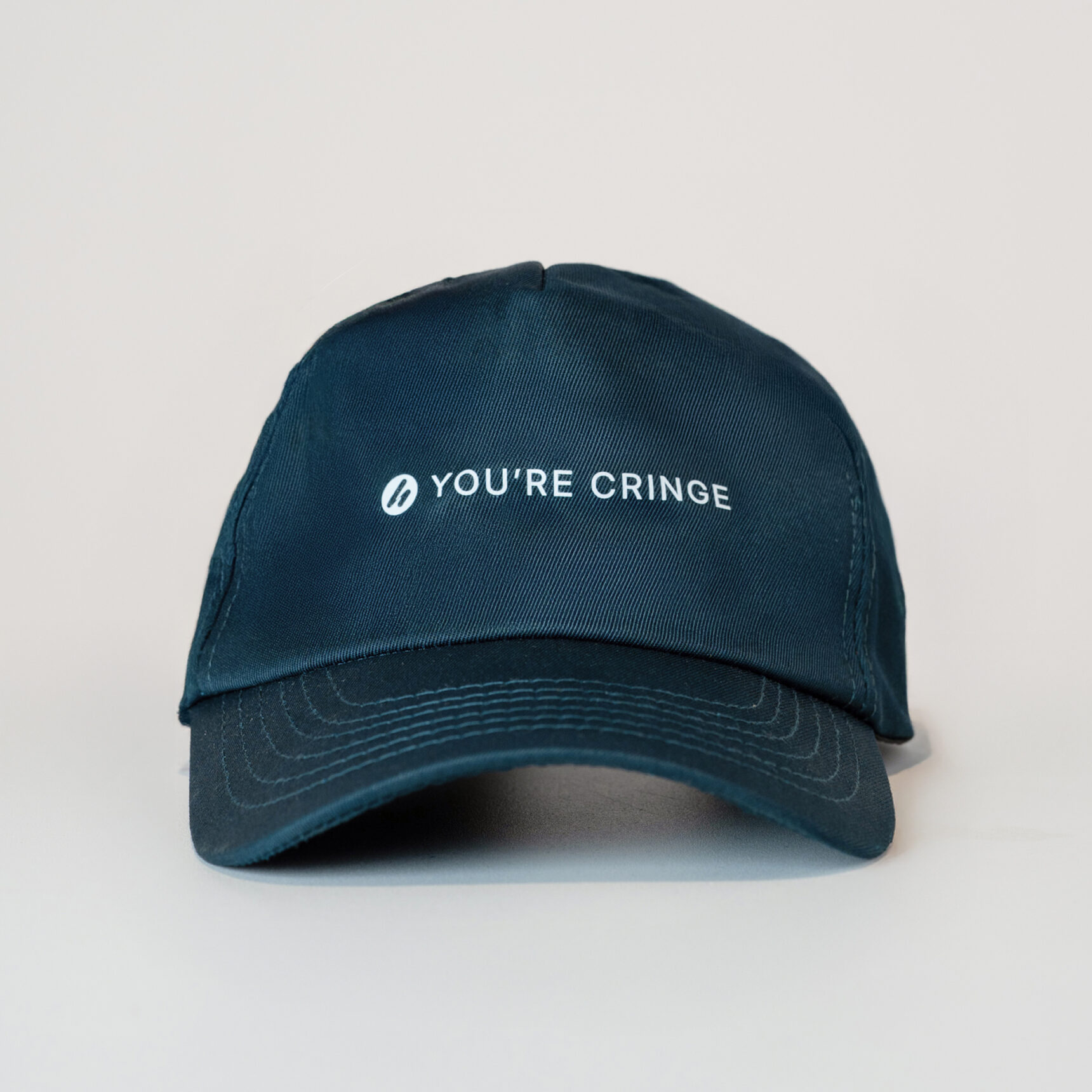 The YOU’RE CRINGE embroidery hits bold, clear across the front.